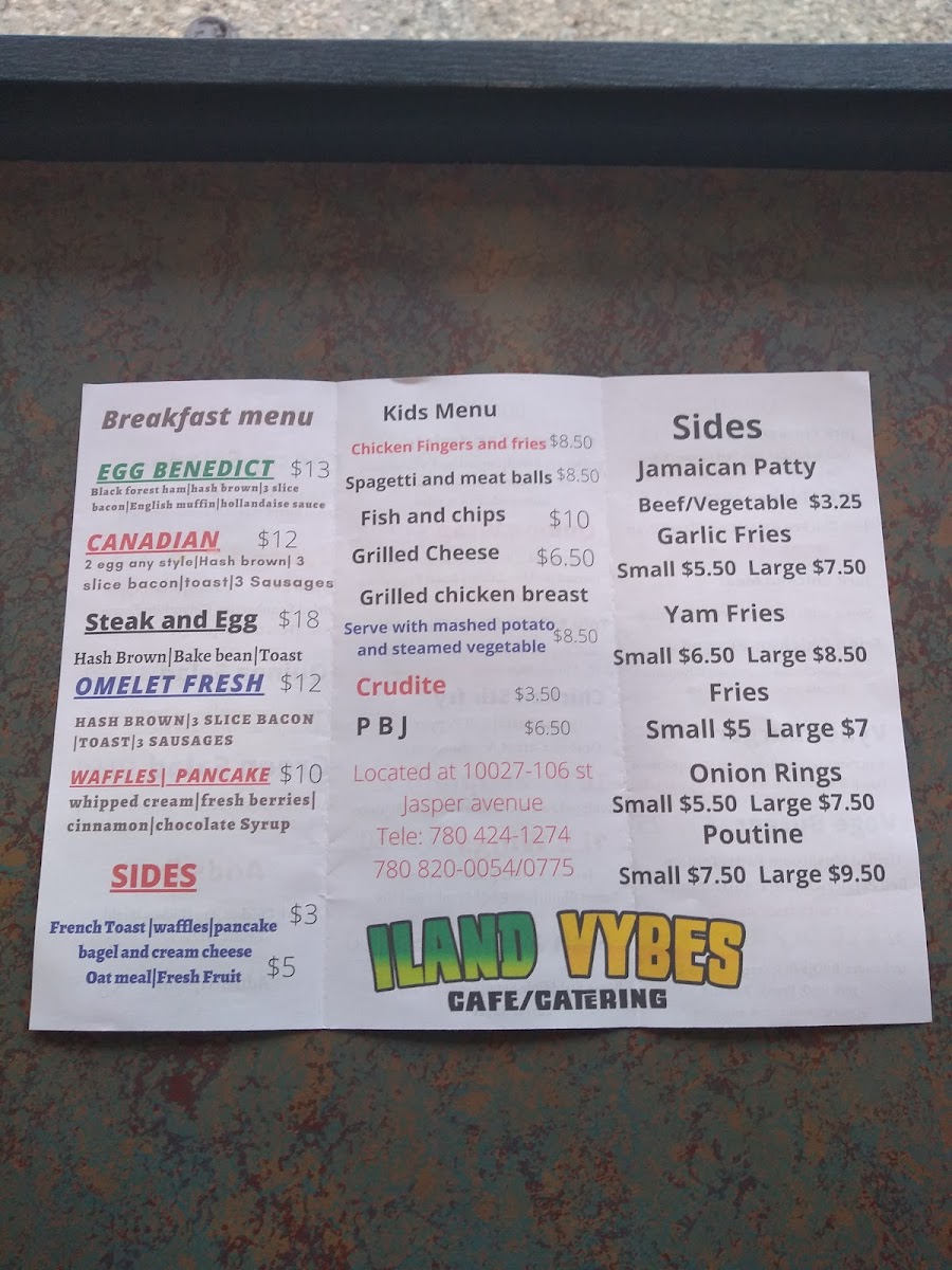 iland Vybes Jamaican cafe Menu