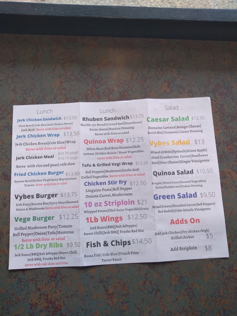 iland Vybes Jamaican Cafe offers a straightforward and inviting menu that blends classic Jamaican flavors with approachable comfort. Whether you're stopping by for a casual lunch or looking for a flavorful meal to enjoy at your own pace, the menu offers a variety of options catering to different appetites and tastes.